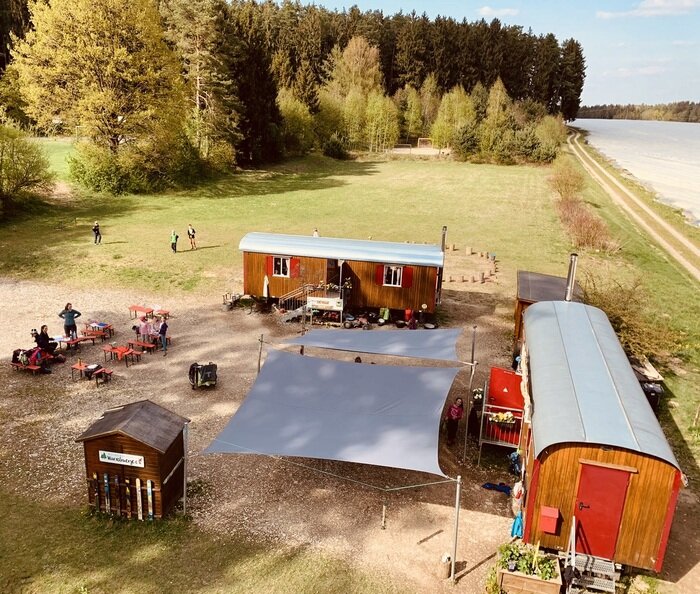 Unser Waldkindergarten ist ein besonderer Bildungsort: Die Kinder verbringen den Großteil ihres Tages im Freien, bei Wind und Wetter, in engem Kontakt mit der Natur. Unsere beiden Bauwägen dienen dabei als Schutzraum bei extremen Wetterbedingungen, als Rückzugsort sowie als Lager- und Kreativraum. Die beiden Gartenhütten beherbergen pädagogisches Material, Werkzeuge und wichtige Ausrüstung.